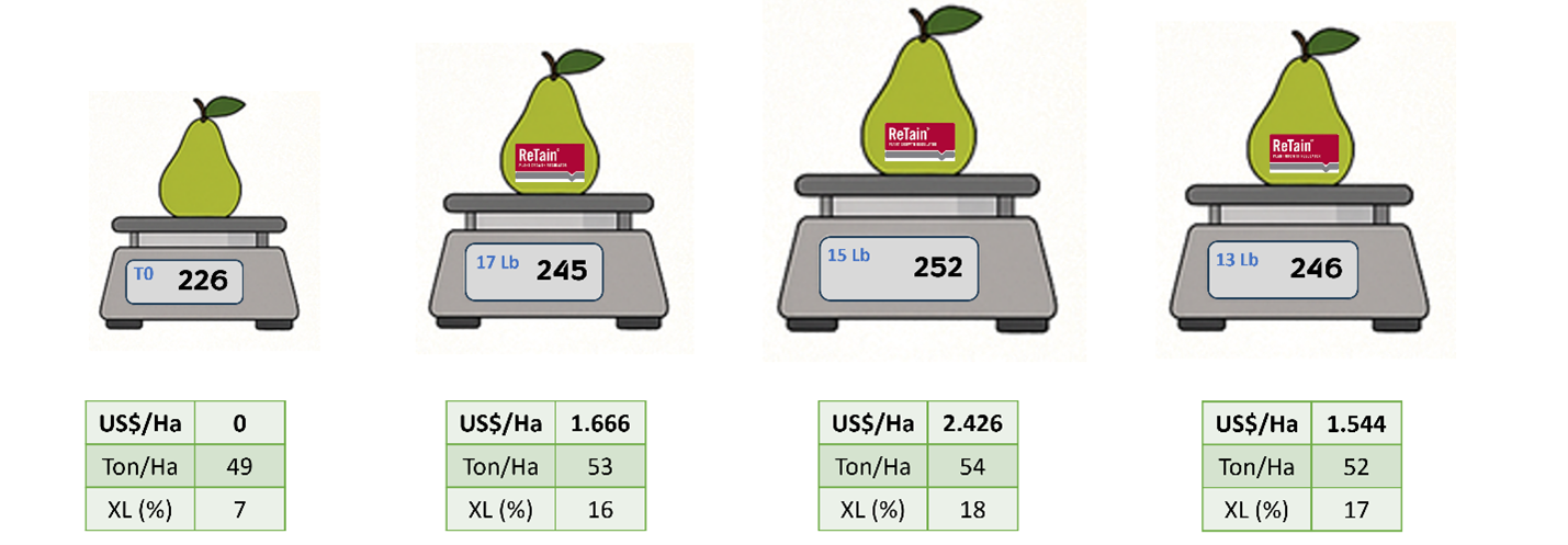 ReTain® eleva el rendimiento en peras Abate Fetel: más calibre, más kilos y mejor retorno.